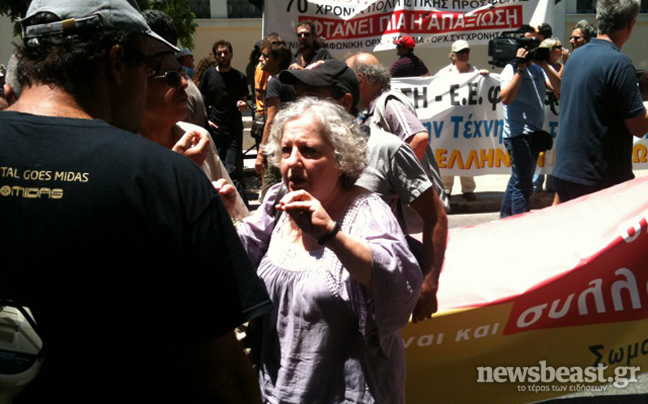Τα σωματεία Τέχνης έφτασαν μόλις στο υπουργείο Πολιτισμού, τον τελικό προορισμό της πορείας διαμαρτυρίας τους.