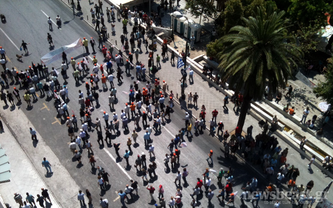 ΓΣΕΕ και ΑΔΕΔΥ συγκεντρώθηκαν από τις 11 στο Πεδίο του Άρεως και έκαναν στη συνέχεια πορεία προς τη βουλή.