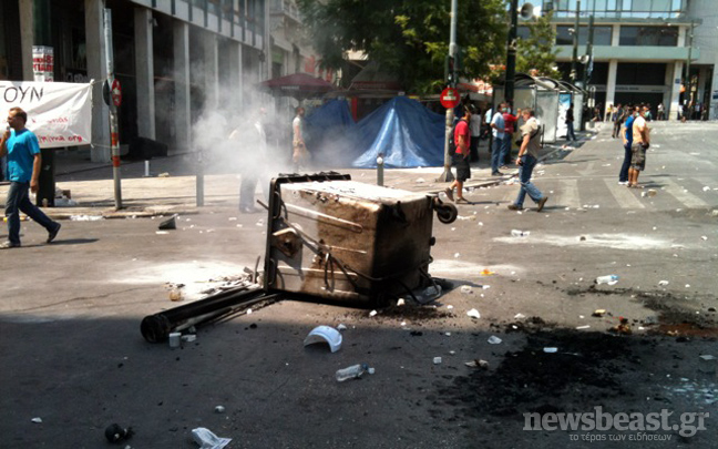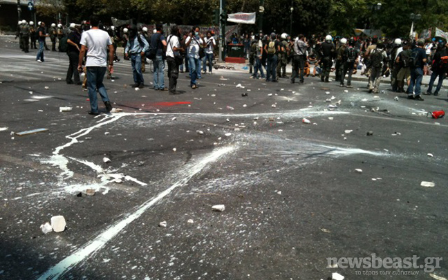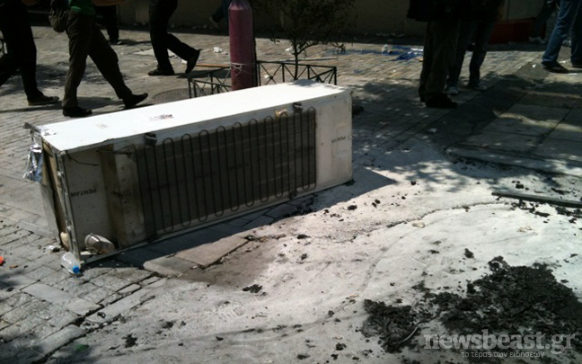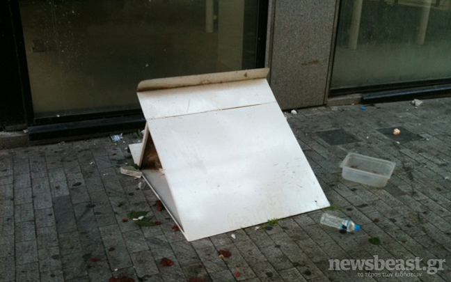 Εκτεταμένες φθορές σε καταστήματα προκάλεσαν οι κουκουλοφόροι, οι οποίοι με τα επεισόδια που δημιούργησαν στιγμάτισαν μία ακόμα πορεία διαμαρτυρίας εναντίον των μέτρων λιτότητας που προωθεί η κυβέρνηση.