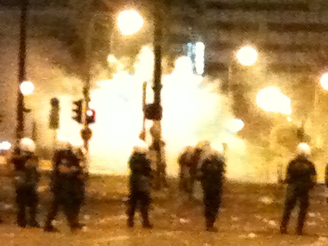 Την ίδια ώρα, στη Βασ. Σοφίας, ένας άνδρας των ΜΑΤ τραυματίστηκε σοβαρά στο χέρι από γκαζάκι με αποτέλεσμα να έχουν ακρωτηριαστεί τα δάχτυλα του ενός χεριού του και αυτή την ώρα μεταφέρεται στο νοσοκομείο.