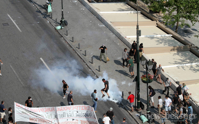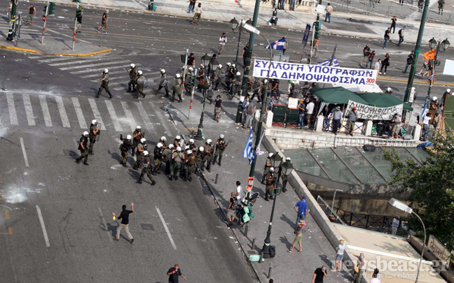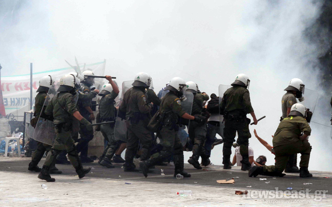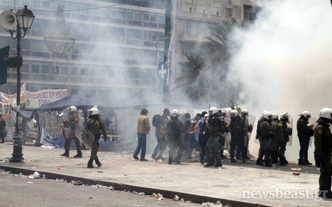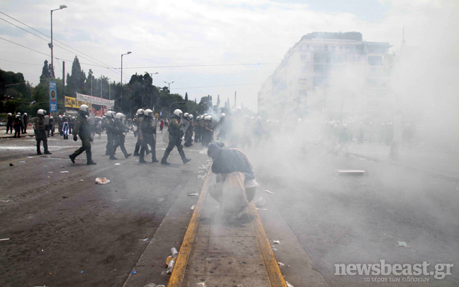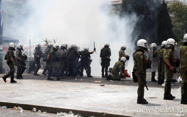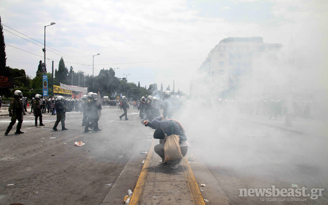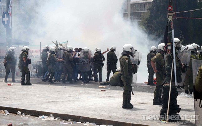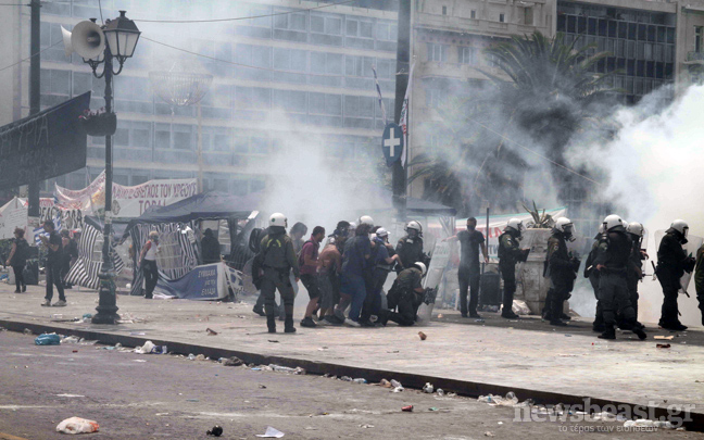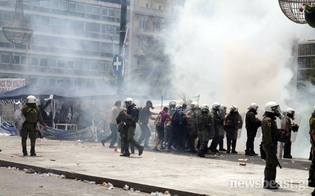 Συνεχίζεται ο κλεφτοπόλεμος μεταξύ των δυνάμεων των ΜΑΤ και των διαδηλωτών. Ο δρόμος μπροστά από την πλατεία Συντάγματος έχει αδειάσει, ενώ στις 15:00 μια διμοιρία των ΜΑΤ αφού έριξε δακρυγόνα μπροστά από το ξενοδοχείο Μεγάλη Βρετανία κινήθηκε τρέχοντας προς τους διαδηλωτές που τράπηκαν σε φυγή.