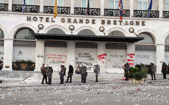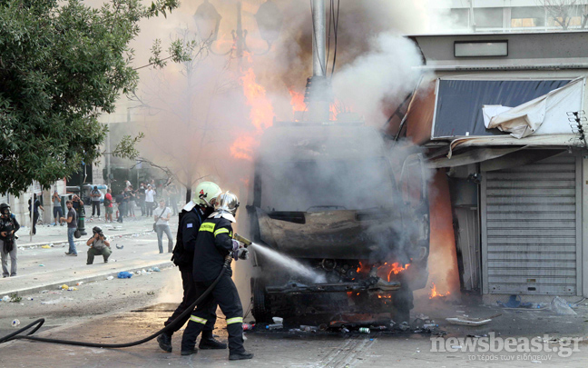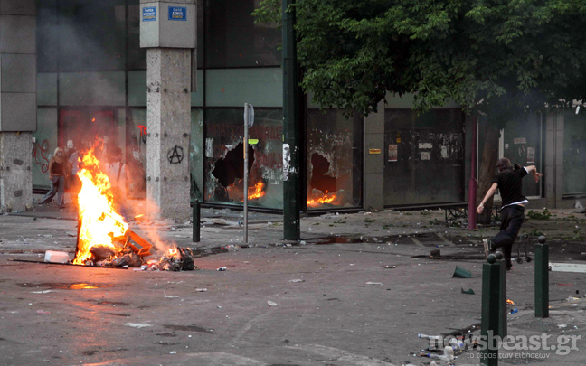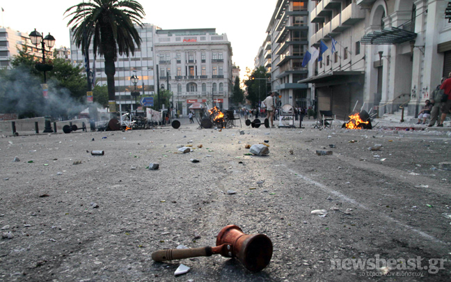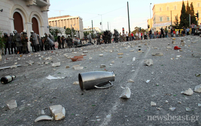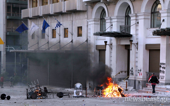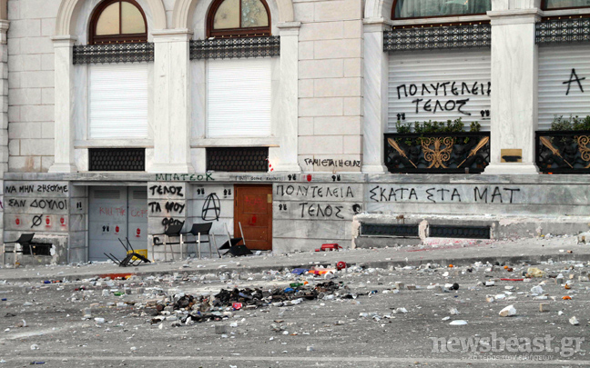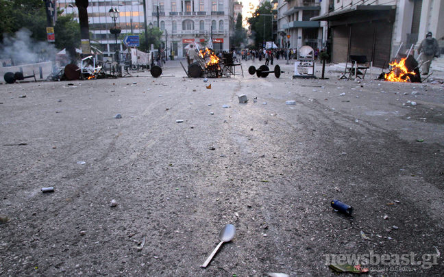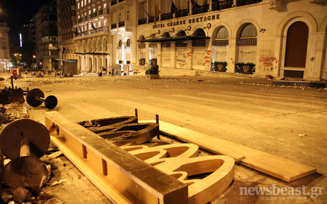 Ισοπεδωμένη πόλη θυμίζει σήμερα το κέντρο της Αθήνας μετά τα μεγάλης έκτασης επεισόδια που διαδραματίστηκαν κατά τη διάρκεια της χθεσινής μέρας. Μάχες και καταστροφές παντού…
