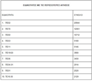 Οι ειδικότητες με τις περισσότερες αιτήσεις αναπληρωτών