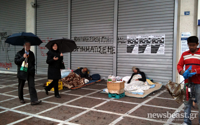 Το παραεμπόριο ακμάζει στην Πατησίων στην Ακαδημίας και στην Ερμού. Ζητιάνοι βρίσκονται σχεδόν σε κάθε γωνία των κεντρικών δρόμων, ενώ μόλις πέσει το σκοτάδι είσοδοι καταστημάτων παγκάκια και απόμερες γωνίες γεμίζουν με πρόχειρα καταλύματα από δεκάδες αστέγους.