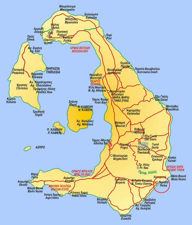 Βρίσκεται στο νοτιοανατολικό σημείο του νησιού, απλωμένη σε μήκος 7 χλμ. Με κατάμαυρη άμμο, καθαρά βαθιά νερά και πλήρως οργανωμένα beach bars και ταβερνούλες ακριβώς πάνω στη θάλασσα, η Περίσσα φιλοξενεί κάθε είδους επισκέπτη που προτιμά κάτι πιο οικονομικό σε ότι αφορά διαμονή και διασκέδαση.