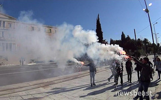 Στη Βουλή έφτασε η πορεία των φοιτητών και των μαθητών που ξεκίνησε από τα Προπύλαια.