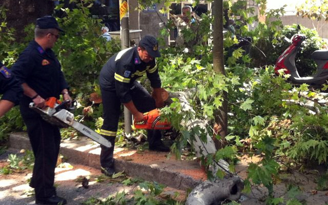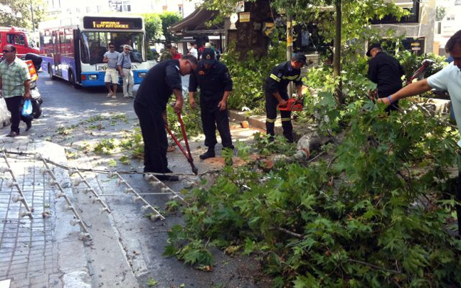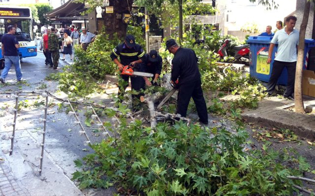 Ο δρόμος παρέμεινε για αρκετή ώρα κλειστός μέχρι οι άνδρες της πυροσβεστικής να απομακρύνουν τα κλωνάρια του πλατάνου και να καθαρίσουν το οδόστρωμα.