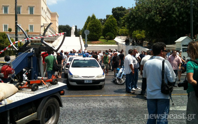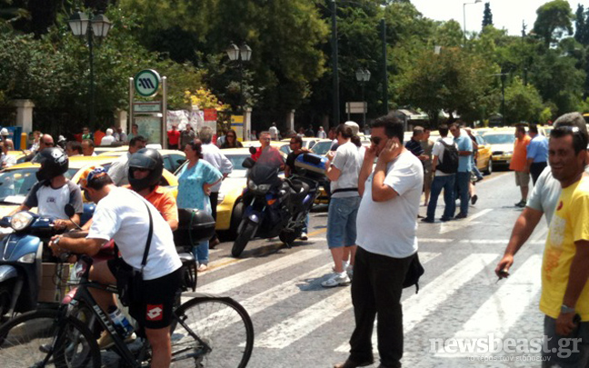 Το κέντρο της πόλης μοιάζει με υπαίθρια πιάτσα, αφού οι οδηγοί έχουν παρατάξει τα οχήματά τους από τον Άγιο Σώστη στη λεωφόρο Συγγρού μέχρι την Όθωνος στην Αμαλίας, όπου η αστυνομία έχει βάλει κλούβες για να κόψει τον περαιτέρω αποκλεισμό.