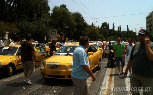 Αντιπροσωπεία των ιδιοκτητών ταξί έχει ανέβει στη Βουλή για να επιδώσει ψήφισμα με τα αιτήματά τους.