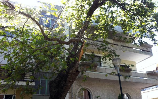 Σχεδόν στο ίδιο σημείο, πριν λίγες ημέρες, είχε πέσει πάλι πλάτανος στην αυλή σπιτιού.