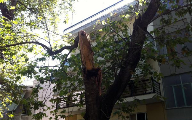 Κάθε τρεις και λίγο τα γέρικα πλατάνια σπάζουν και πέφτουν, με κίνδυνο να καταπλακώσουν πεζούς ή οδηγούς δικύκλων και αυτοκινήτων.