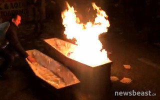 Όταν τελικά οι οικοδόμοι έφτασαν στο υπ. Εργασίας, άνοιξαν το φέρετρο, άφησαν τα στεφάνια στο εσωτερικό του και του έβαλαν φωτιά.