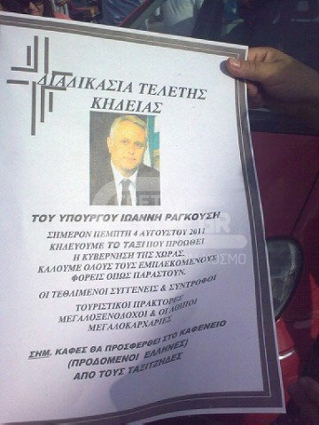Έχουν παραγγείλει και μια νεκροφόρα, όπως γράφει το Cretalive.gr, κι ετοιμάζονται να κατέβουν στο κέντρο του Ηρακλείου να… κλάψουν για τον υπουργό. Δεν είναι πάντως γνωστό αν είναι πρωτοβουλία κάποιων μεμονωμένων ταξιτζήδων ή του συνδικαλιστικού σωματείου τους.