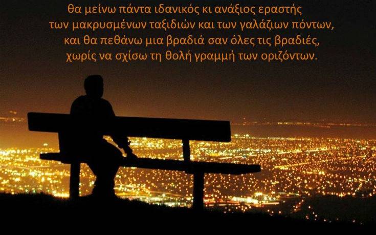 «Θα μείνω πάντα ιδανικός κι ανάξιος εραστής των μακρυσμένων ταξιδιών και των γαλάζιων πόντων». Νίκος Καββαδίας, Έλληνας ποιητής (1910-1975)
