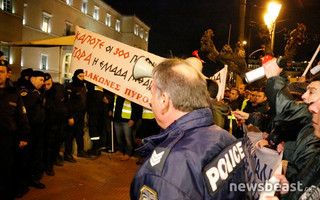 Είχε προηγηθεί συγκέντρωση των διαμαρτυρόμενων στην πλατεία Κολοκοτρώνη, όπου το «παρών» έδωσαν και οι βουλευτές της Χρυσής Αυγής, Ηλίας Κασιδιάρης και Κωνσταντίνος Μπαρμπαρούσης.