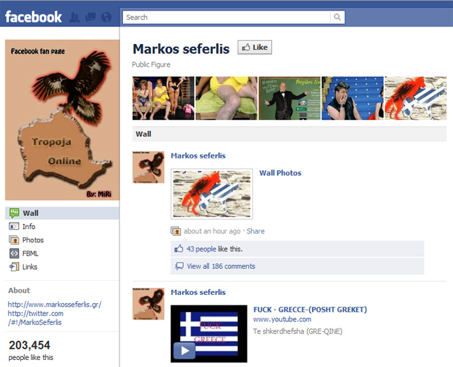 Αλβανοί «χάκεψαν» την επίσημη σελίδα του ηθοποιού Μάρκου Σεφερλή στο facebook. Οι «εισβολείς», σε μία προκλητικότατη ενέργεια, έχουν αναρτήσει ανθελληνικά βίντεο και υβριστικές φωτογραφίες για τη χώρα μας.