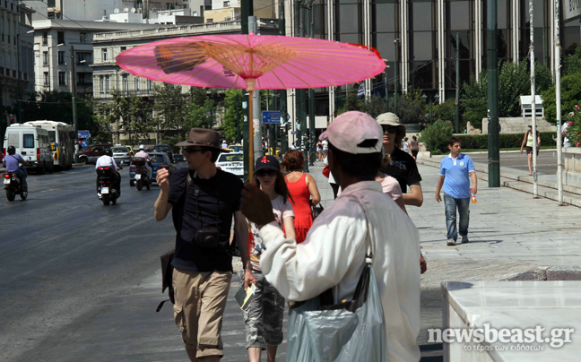 Ο υδράργυρος βρίσκεται σε υψηλά επίπεδα και αναμένεται να ανέβει ακόμα περισσότερο μέσα στα επόμενα 24ωρα. Η καρδιά της πρωτεύουσας, η πλατεία Συντάγματος, προσφέρει αυτές τις καυτές ημέρες λίγες ανάσες δροσιάς και ξεκούρασης σε τουρίστες και Αθηναίους.