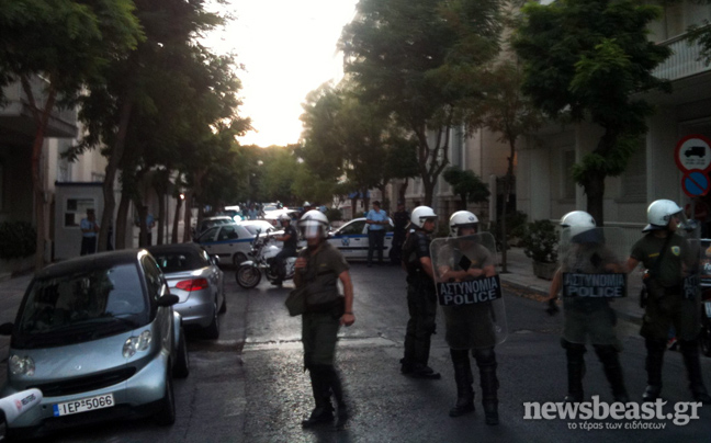 Γύρω-γύρω στα στενά του Κολωνακίου γυρνάνε οι διαδηλωτές σε μία προσπάθεια να αποφύγουν τη διμοιρία των ΜΑΤ. Σε σπάσιμο νεύρων έχει εξελιχθεί αυτό το «κρυφτούλι» μεταξύ αστυνομικών και διαδηλωτών με τους τελευταίους να είναι αποφασισμένοι να φτάσουν στον τελικό προορισμό τους πριν προλάβουν να παραταχθούν οι αστυνομικοί.
