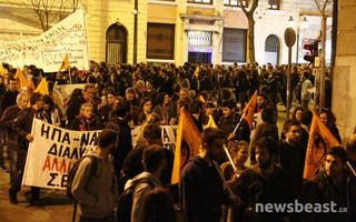 Σε εξέλιξη είναι αυτή την ώρα αντιπολεμικό, αντιρατσιστικό συλλαλητήριο στο κέντρο της Αθήνας ενάντια στη δράση του NATO στο Αιγαίο.