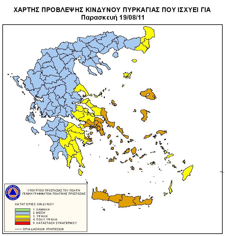 Σύμφωνα με τον Χάρτη Πρόβλεψης Κινδύνου Πυρκαγιάς που εκδίδει η Γενική Γραμματεία Πολιτικής Προστασίας πρόκειται για τις Περιφερειακές Ενότητες: