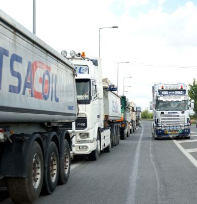 Τεράστιες ουρές σχηματίζουν οι οδηγοί με τα αυτοκίνητά τους στα πρατήρια υγρών καυσίμων καθώς η απεργία διαρκείας των ιδιοκτητών των φορτηγών έχει προκαλέσει πανικό.