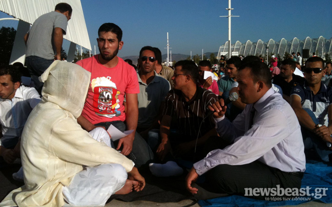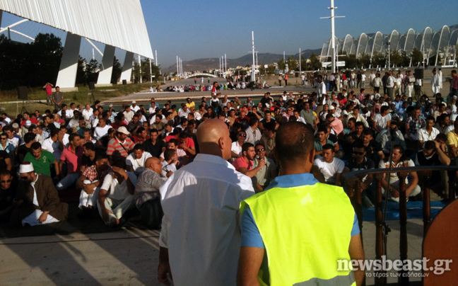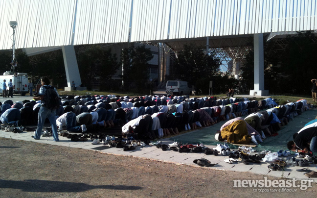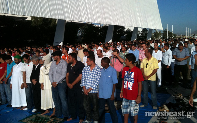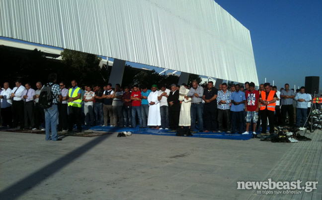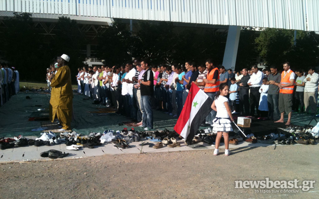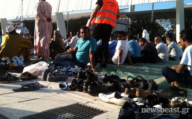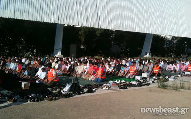 Μουσουλμάνοι από όλη την Αττική έχουν συγκεντρωθεί στους χώρους που διατέθηκαν για την προσευχή τους.