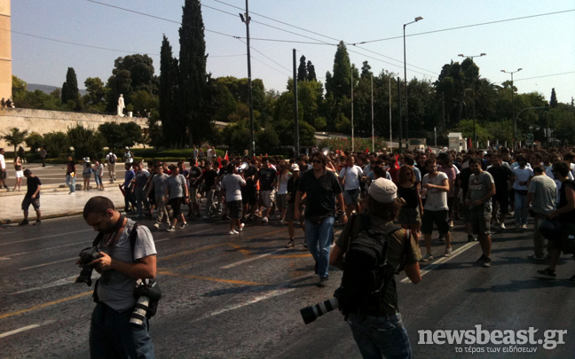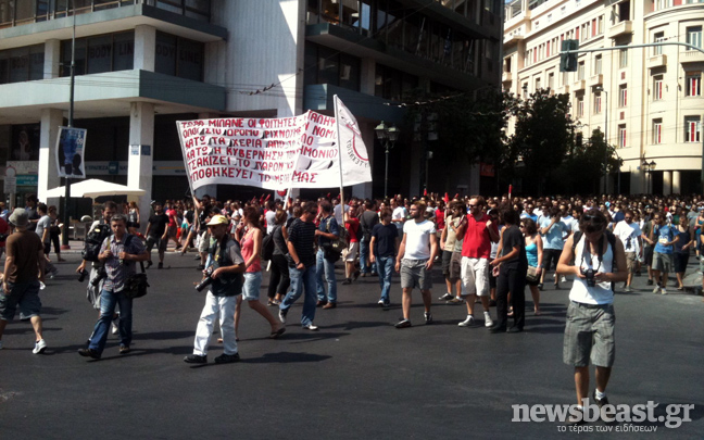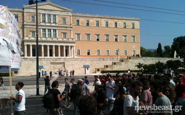 Κάτω από την πλατεία Συντάγματος έφτασε η πορεία καθηγητών και φοιτητών που διαδηλώνουν ενάντια στο νέο νόμο για τα ΑΕΙ.