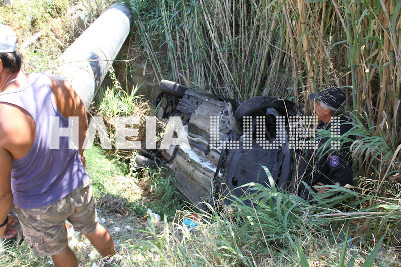 Το αυτοκίνητο των τουριστών μετά τη σφοδρή σύγκρουση έπεσε μέσα σε αποστραγγιστικό κανάλι παραπλεύρως της Εθνικής Οδού. Περίοικοι και διερχόμενοι οδηγοί σταμάτησαν να βοηθήσουν μέσα στο «μακελειό».