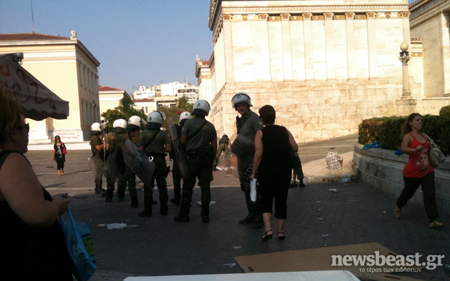 Επιχείρηση-σκούπα πραγματοποιεί αυτή την ώρα στα Προπύλαια η δημοτική αστυνομία με τη συνδρομή μίας διμοιρίας των ΜΑΤ για την απομάκρυνση των μικροπωλητών.