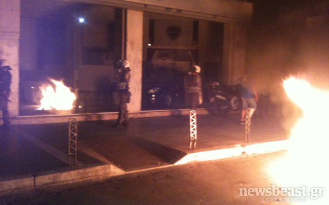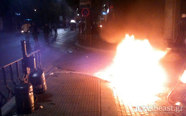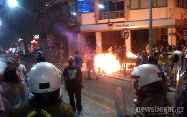 Η ατμόσφαιρα είναι αποπνικτική την ώρα που οι συγκρούσεις μεταξύ των διαδηλωτών και δυνάμεων των ΜΑΤ είναι συνεχείς και ακούγονται συνεχώς ρίψεις χημικών.