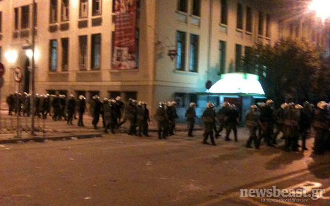 Έφτασε στην κεντρική πύλη της ΔΕΘ ο κύριος όγκος των διαδηλωτών που αποτελείται κυρίως από φοιτητές. Η πορεία περνά μέσα από την οδό Αλεξάκη υπό την αυστηρή παρουσία των αστυνομικών δυνάμεων αλλά και περιφρούρηση από τους ίδιους τους φοιτητές.