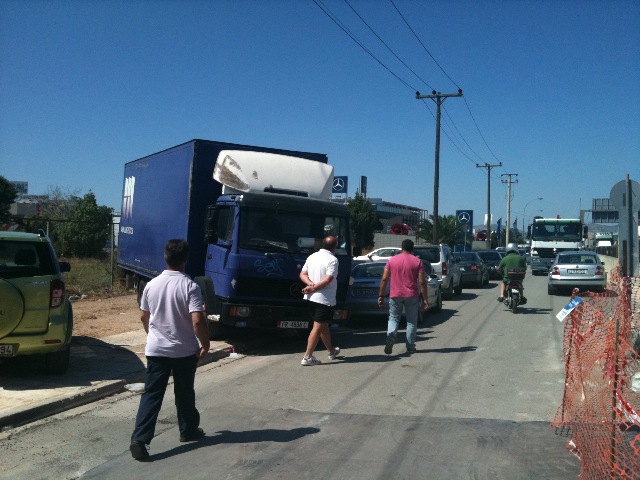 Οι απεργοί σταμάτησαν φορτηγό και, αφού ανάγκασαν τον οδηγό να σταθμεύσει στον παράδρομο το φορτηγό που οδηγούσε, κλήθηκε η τροχαία ώστε να ελεγχθεί το φορτίο του.