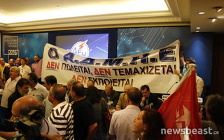 Η συνεδρίαση τελικά διεκόπη έπειτα από την παρέμβαση των συνδικαλιστών. Τελικά αποφασίσθηκε η συνέλευση θα πραγματοποιηθεί στις 3 το μεσημέρι στο υπουργείο Οικονομικών.