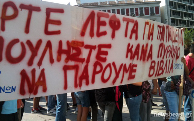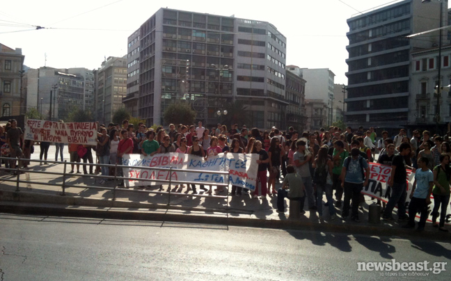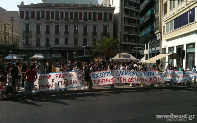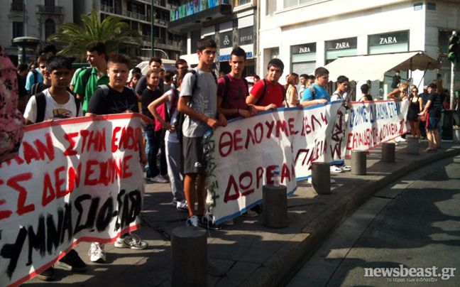 Οι μαθητές αναμένεται να πραγματοποιήσουν πορεία προς τη Βουλή. Φωνάζουν συνθήματα κατά του υπουργείου Παιδείας διαμαρτυρόμενοι για τα βιβλία… που δεν έχουν ακόμη παραλάβει και για τις καθυστερήσεις που παρατηρούνται στη διανομή τους.
