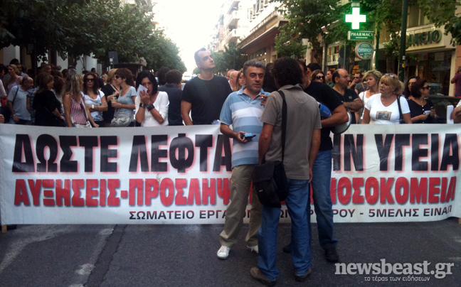 Μαζική είναι η κινητοποίηση των εργαζομένων του υπουργείου Υγείας αφού παραμένουν συγκεντρωμένοι έξω από το υπουργείο διαμαρτυρόμενοι για τα σκληρά μέτρα της κυβέρνησης και την υπαγωγής τους στο καθεστώς της εργασιακής εφεδρείας.