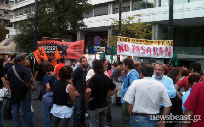 Συγκέντρωση διαμαρτυρίας πραγματοποιούν αυτή την ώρα στο Σύνταγμα πρωτοβάθμια σωματεία. Δεκάδες άτομα βρίσκονται έξω από το υπουργείο Οικονομικών και διαμαρτύρονται για τα νέα μέτρα – φωτιά και τους φόρους που έρχονται.