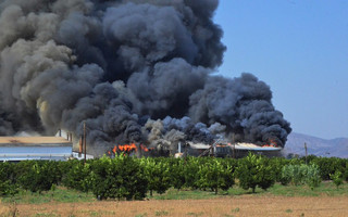 Σε εξέλιξη βρίσκεται μεγάλη φωτιά στο συνεταιριστικό εργοστάσιο χυμοποίησης εσπεριδοειδών, με την επωνυμία «Εσπερίδες», στη Νέα Κίο Αργολίδας, που εκδηλώθηκε από άγνωστη μέχρι στιγμής αιτία στις 3.35 μετά το μεσημέρι, στο χώρο της αποθήκης.