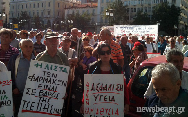 Στην πλατεία Κοτζιά βρίσκονται αυτή την ώρα συγκεντρωμένοι συνταξιούχοι όλων των ταμείων που διαμαρτύρονται για τα αλλεπάλληλα χαράτσια και δηλώνουν πως δεν θα τα πληρώσουν.