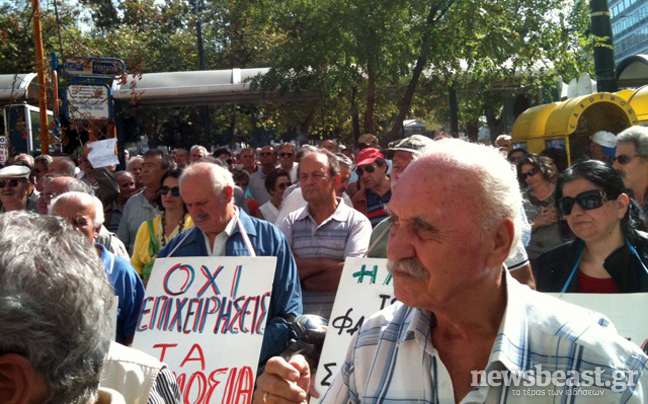 Συνταξιούχοι όλων των ταμείων ένωσαν τις φωνές τους διαμαρτυρόμενοι για τα «χαράτσια» και δηλώνοντας πως δεν μπορούν να τα πληρώσουν.