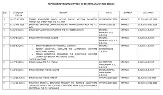 Ακολουθεί ο πίνακας με τις περιοχές: