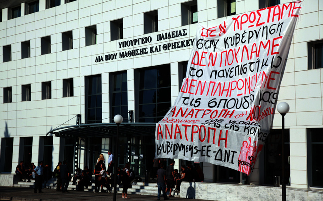 Μέσα στο υπουργείο Παιδείας πέρασε νωρίς το πρωί ομάδα φοιτητών.
