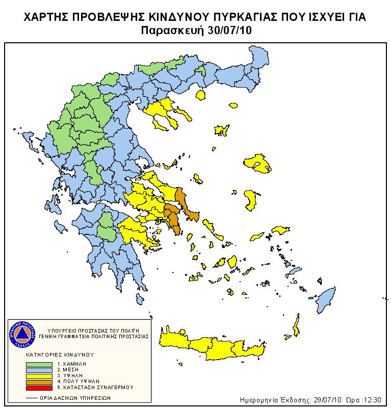 περιοχών ώστε να βρίσκονται σε αυξημένη ετοιμότητα προκειμένου να