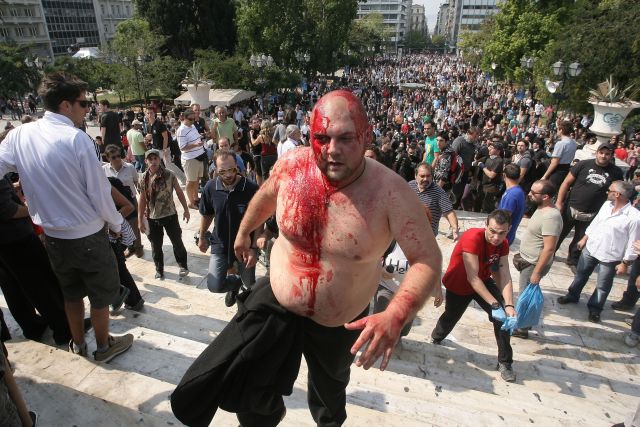 Σε θέατρο συγκρούσεων μετατράπηκε για ακόμα μία φορά το Σύνταγμα, όπου νωρίτερα συγκεντρώθηκαν χιλιάδες διαδηλωτές σε ένδειξη διαμαρτυρίας για τα μέτρα της κυβέρνησης.