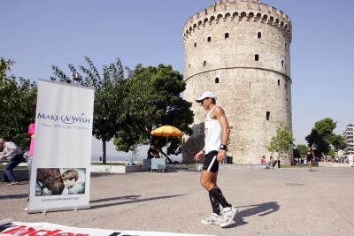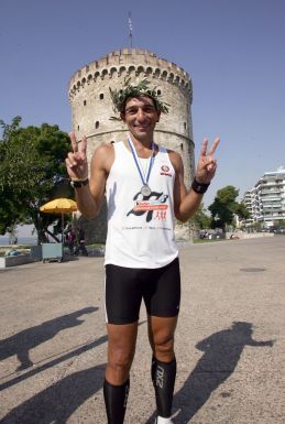 Στη Θεσσαλονίκη, φτάνοντας στο Λευκό Πύργο, τον υποδέχτηκε ο επίτιμος πρόξενος της Μάλτας, Ανδρόνικος Σινιώρης που του προσέφερε το συμβολικό δάφνινο στεφάνι, ο πρόεδρος του συλλόγου βετεράνων αθλητών στίβου Θεσσαλονίκης, Γιάννης Καρπασίτης, που του απένειμε μετάλλιο, η εκπρόσωπος του «Make a wish» στη Θεσσαλονίκη, Κάλλη Χαλκιά και αντιπροσωπεία της αντιδημαρχίας Νεότητας, Αθλητισμού και Εθελοντών.