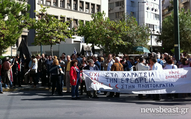 Κλειστή είναι η Ακαδημίας, στο ύψος της πλατείας Κάνιγγος, καθώς αρκετές εκατοντάδες κόσμου είναι συγκεντρωμένοι έξω από το υπουργείο Ανάπτυξης διαμαρτυρόμενοι για το άγριο «μαχαίρι» στους μισθούς τους όπως ανακοίνωσε το υπουργείο Οικονομικών.