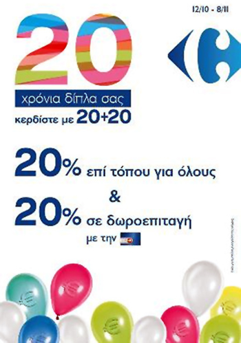 Από τις 12 Οκτωβρίου έως και τις 8 Νοεμβρίου, σε όλα τα καταστήματα Carrefour και Carrefour Μαρινόπουλος, ο αριθμός «20» έχει την τιμητική του!