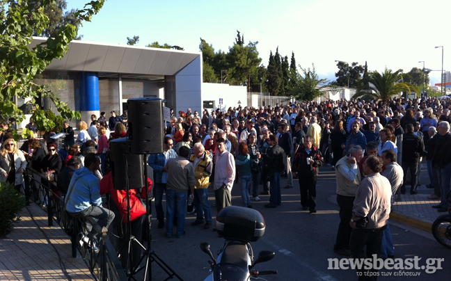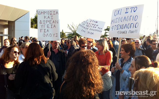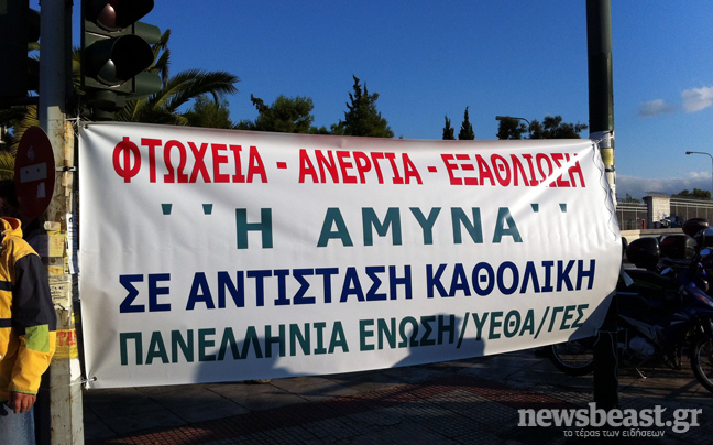 Οι εργαζόμενοι διαμαρτύρονται για τα οικονομικά μέτρα.
