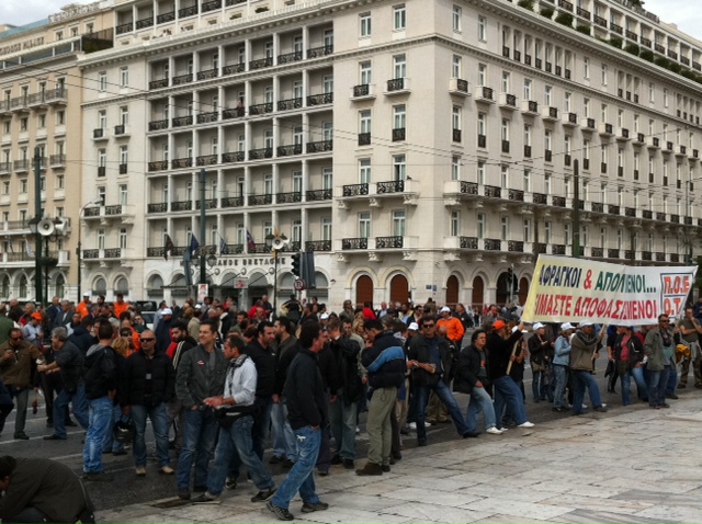 Στην πλατεία Συντάγματος έφθασαν πριν από λίγο οι διαδηλωτές που συμμετέχουν στο συλλαλητήριο των υπαλλήλων του Δημοσίου.