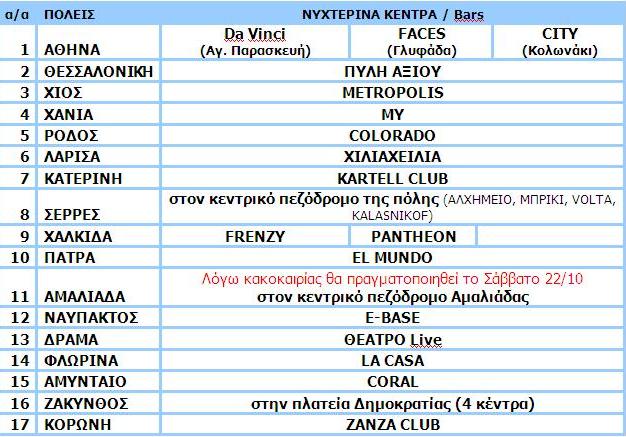 Η εκδήλωση τελικά πραγματοποιήθηκε ταυτόχρονα σε πάνω από 25 νυχτερινά κέντρα και μπαράκια σε 17 πόλεις της Ελλάδας ενώ στην Αμαλιάδα, λόγω ακραίων καιρικών φαινομένων στο κέντρο της πόλης, η ενέργεια θα πραγματοποιηθεί το Σάββατο 22/10 στον κεντρικό πεζόδρομο Αμαλιάδας, καλύπτοντας τα κέντρα της περιοχής.
