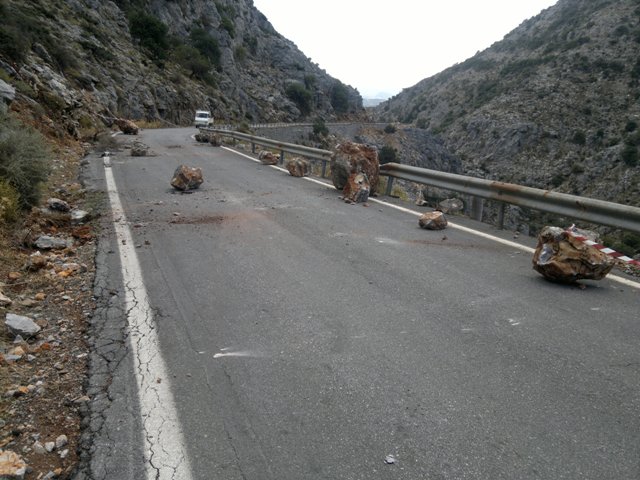 Αυτό συνέβη στην Κρήτη και συγκεκριμένα στο Γωνιανό Φαράγγι στονδρόμο Ηράκλειο-Ανώγεια. Μεγάλα κομμάτια βράχων έπεσαν στο δρόμο, αλλά ευτυχώς την ώρα της κατολίσθησης δεν υπήρχε κυκλοφορία στο δρόμο και αποφεύχθηκαν τα χειρότερα!